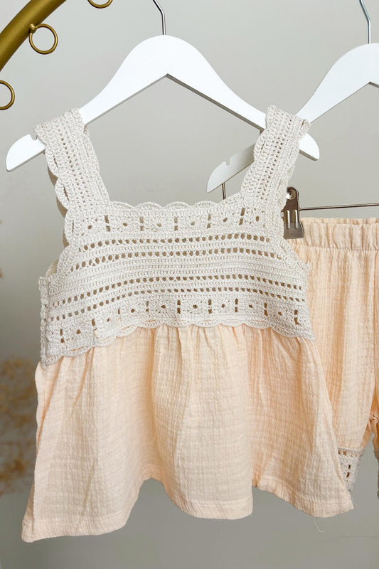 70% İndirimKız Çocuk Askılı Örgü Detaylı Müslin Takım