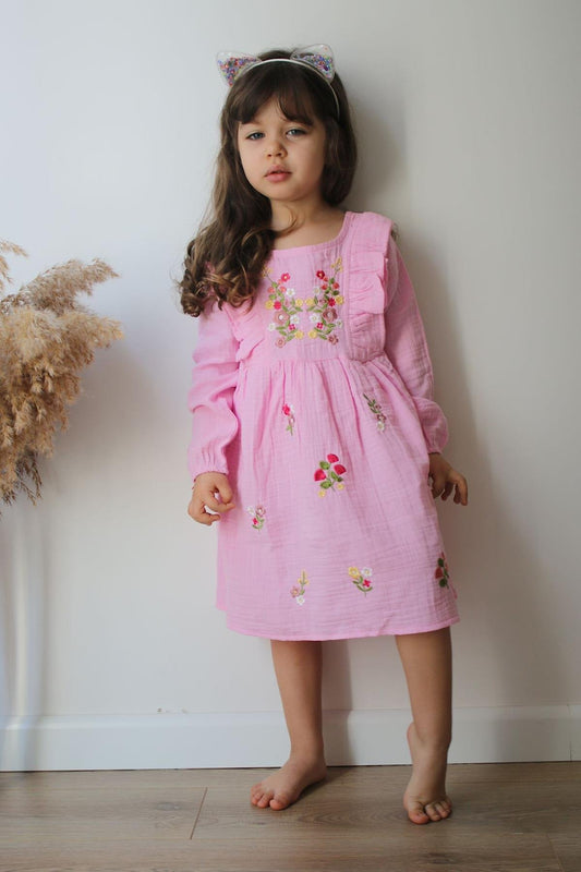 70% İndirimKız Çocuk Çiçekli Müslin Elbise