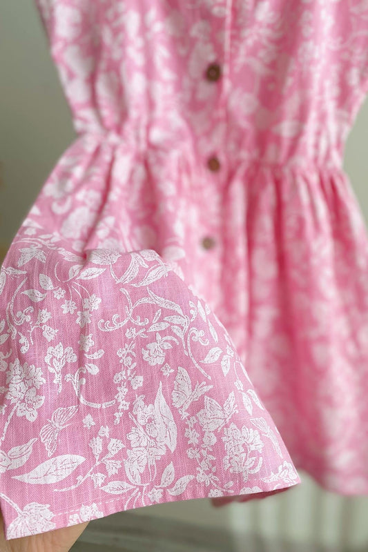 70% İndirimKız Çocuk Çiçek Desenli Keten Elbise