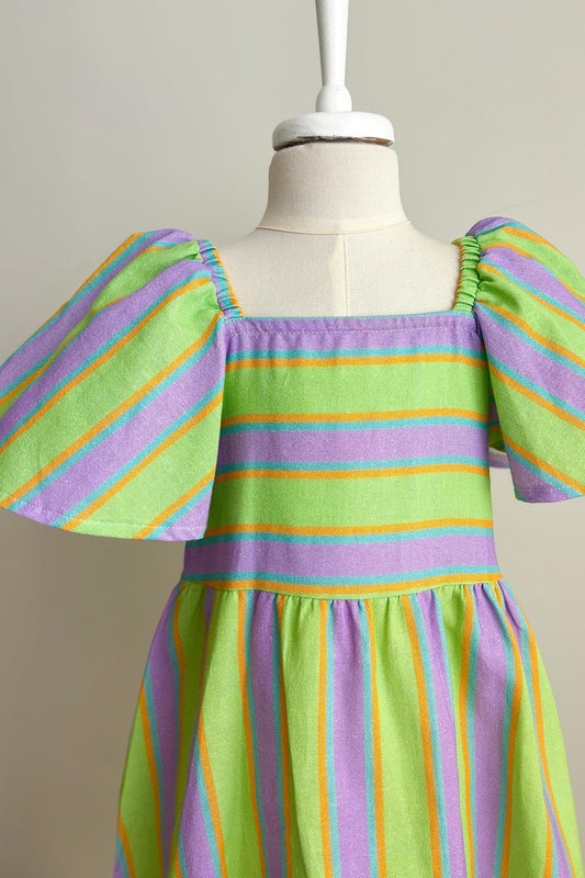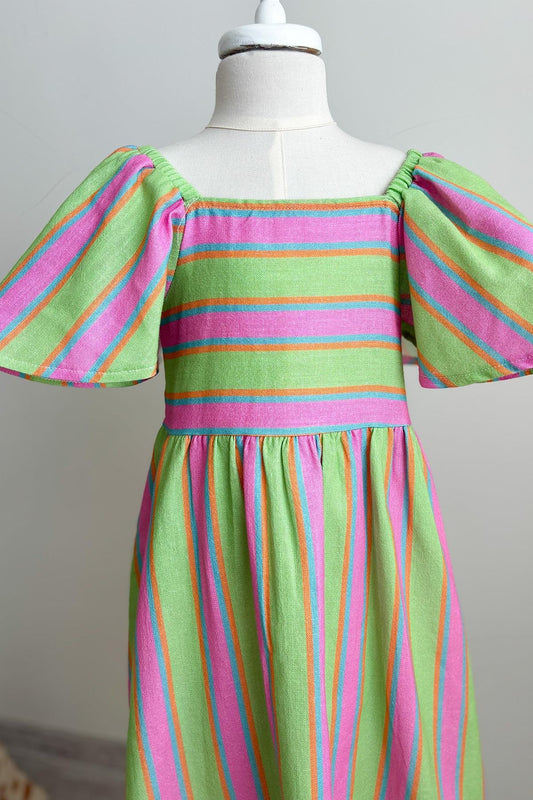 70% İndirimKız Çocuk Çizgili Keten Elbise