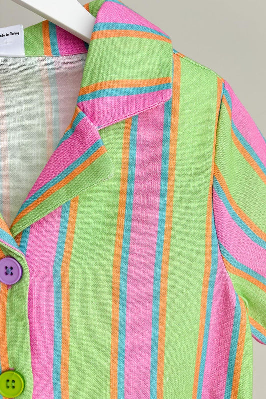 69% İndirimKız Çocuk Çizgili Keten Gömlek Ceket