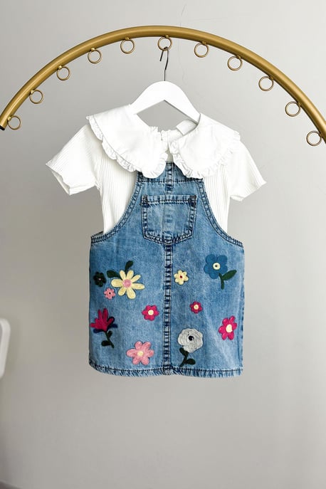 Kız Çocuk Çiçek Nakışlı Kot Elbise