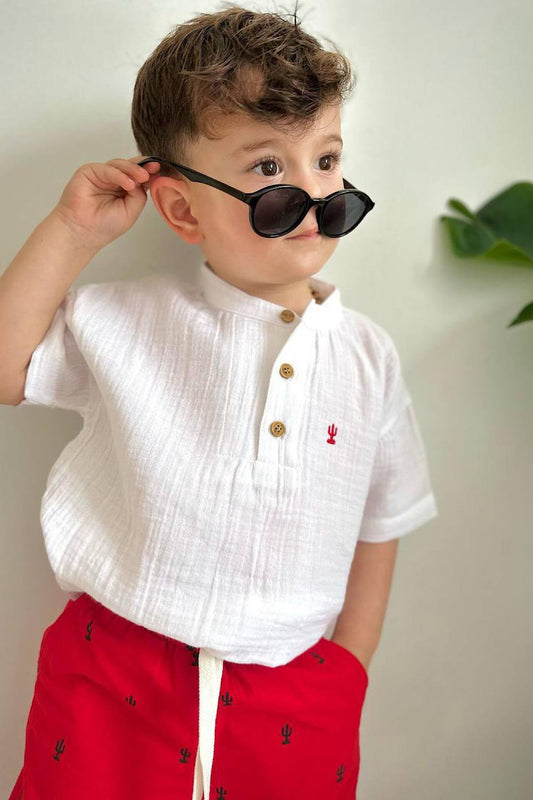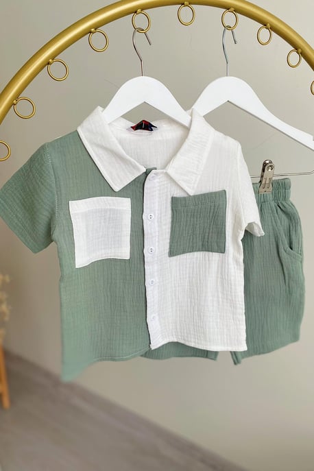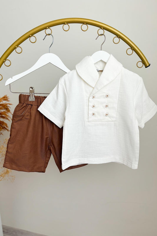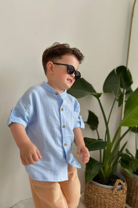 70% İndirimErkek Çocuk Müslin Gömlek Şortlu Takım