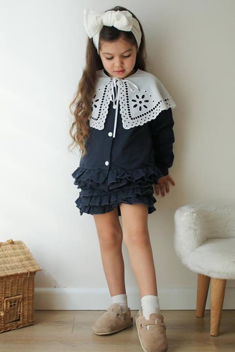 • Kız Çocuk Örgü Motifli Denim Ceket Pantolon Takım