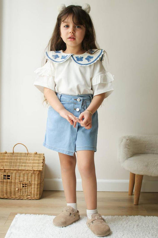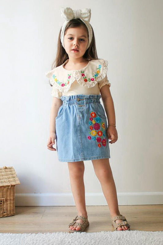 • Kız Çocuk Çiçek Nakış Kot Takım