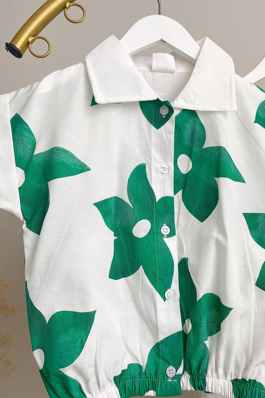 70% İndirimKız Çocuk Yeşil Çiçek Desenli Gömlek Takım