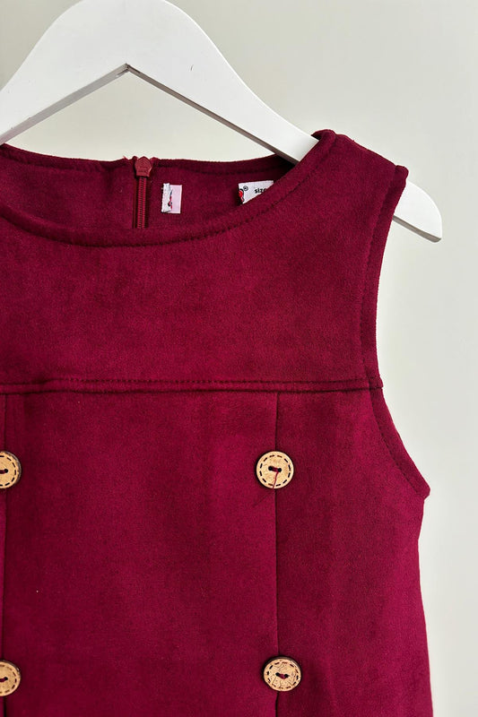 • Kız Çocuk Vişne Düğme Detay Elbise
