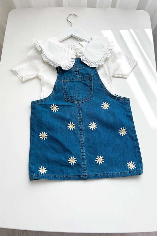 • Kız Çocuk Papatya İşleme Kot Elbise