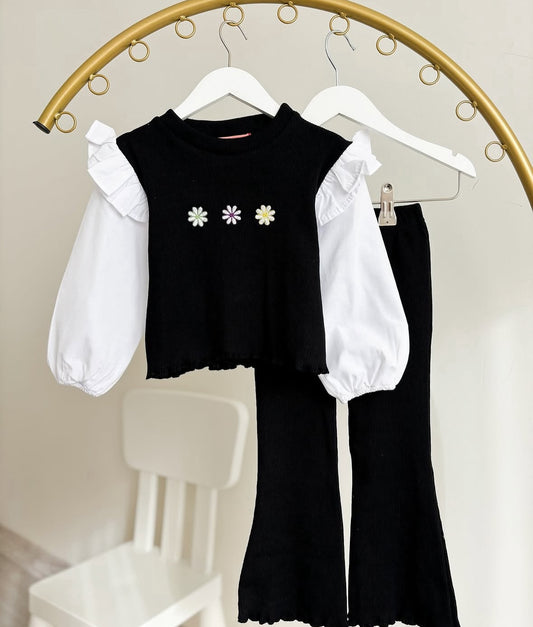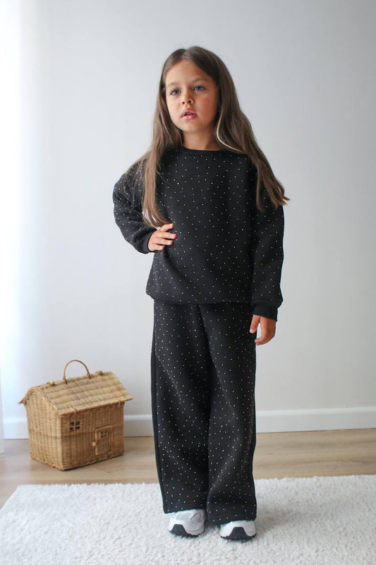 Kız Çocuk Örgü Motifli Sweatshirt Şardonlu Takım