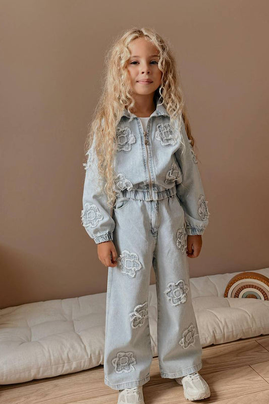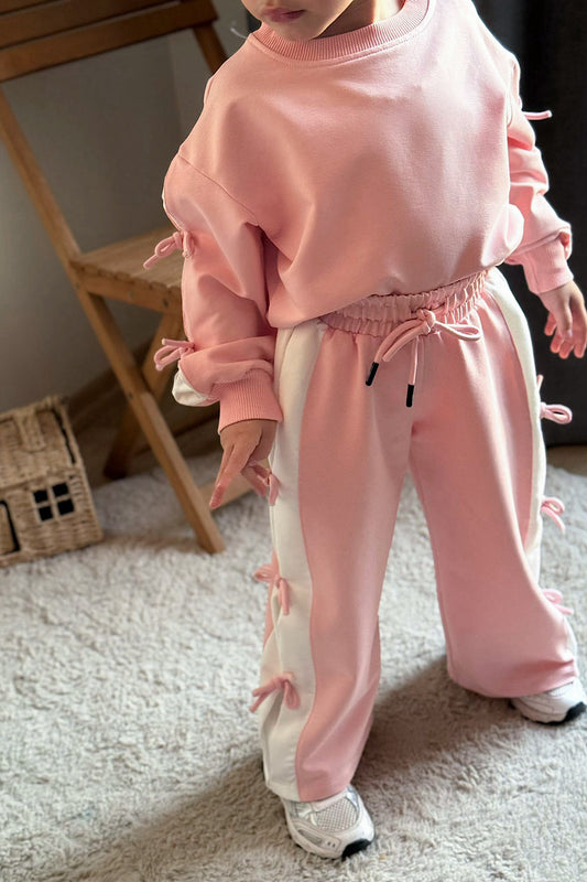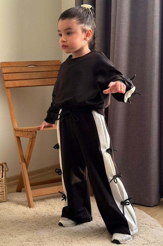 Kız Çocuk Motifli Sweatshirt Şardonlu Takım