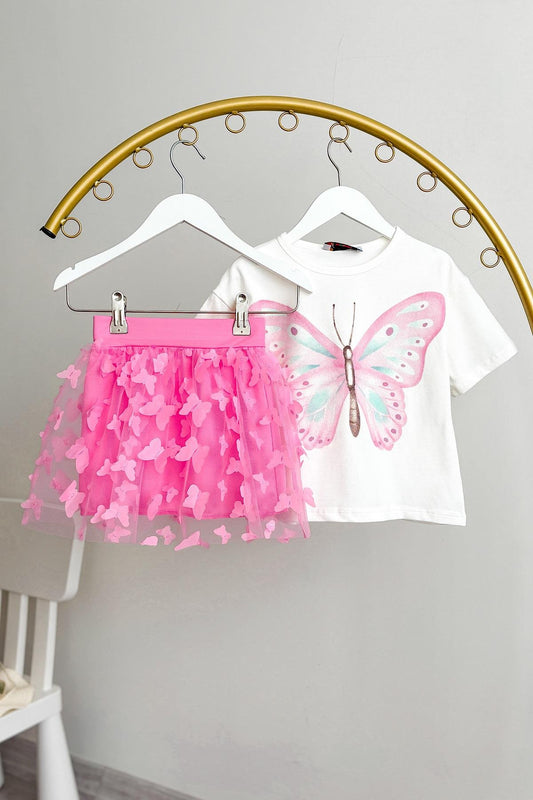 70% İndirimKız Çocuk Kelebek Detay Etekli Takım